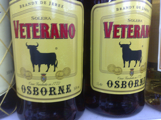 The bulls were black, as they are now, but had the name of the brandy – “Veterano” – inscribed in red in the middle.