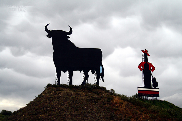 The black bull is actually the commercial trade mark of sherry and spirits manufacturer Osborne, and the bulls that can be found throughout Spain are the results of a rather unique advertising campaign. The bulls are in fact huge billboards to promote the company’s Brandy de Jerez in the Spanish countryside and were very popular from the inception of the advertising campaign in 1956, when the first Osborne bull (or toro de Osborne in Spanish) appeared after they were devised by designer and illustrator Manolo Prieto.